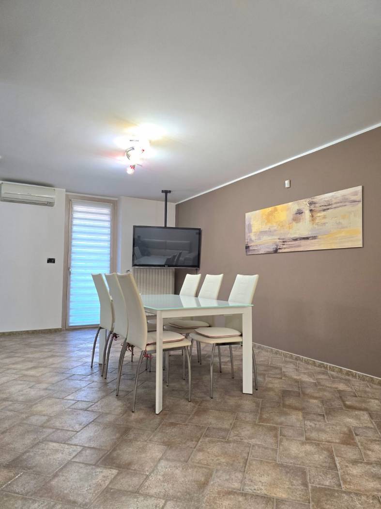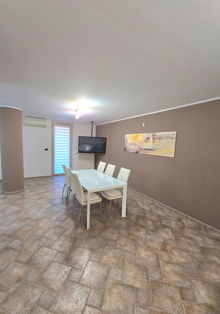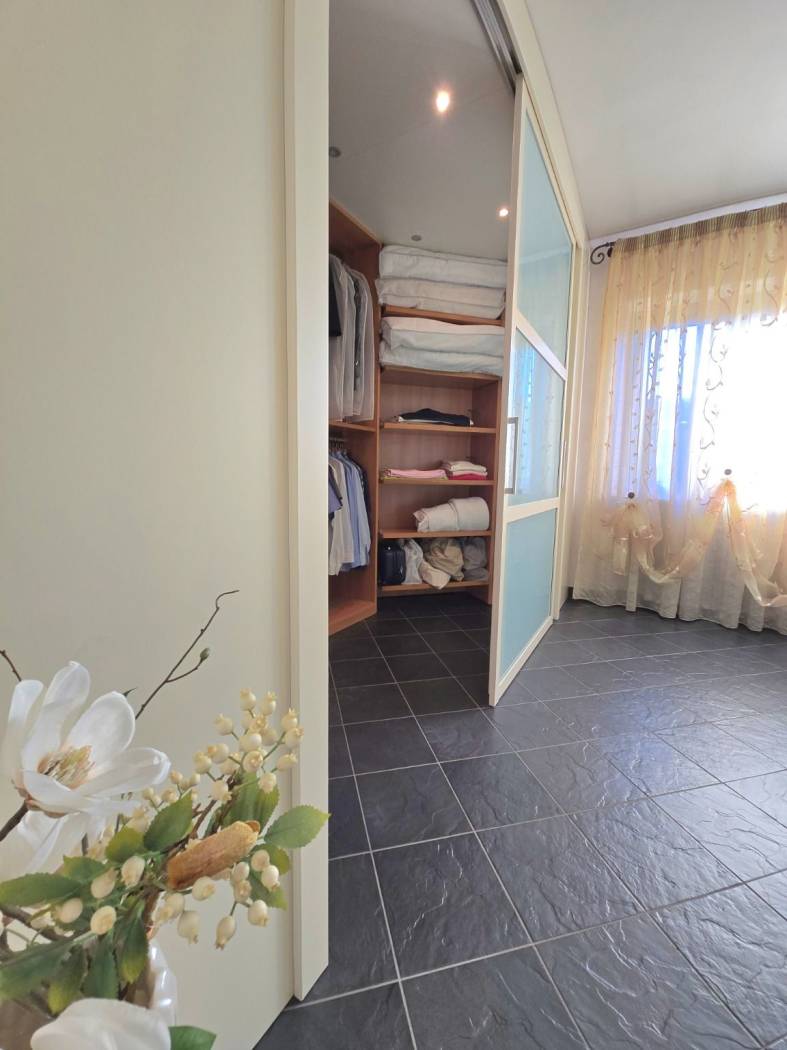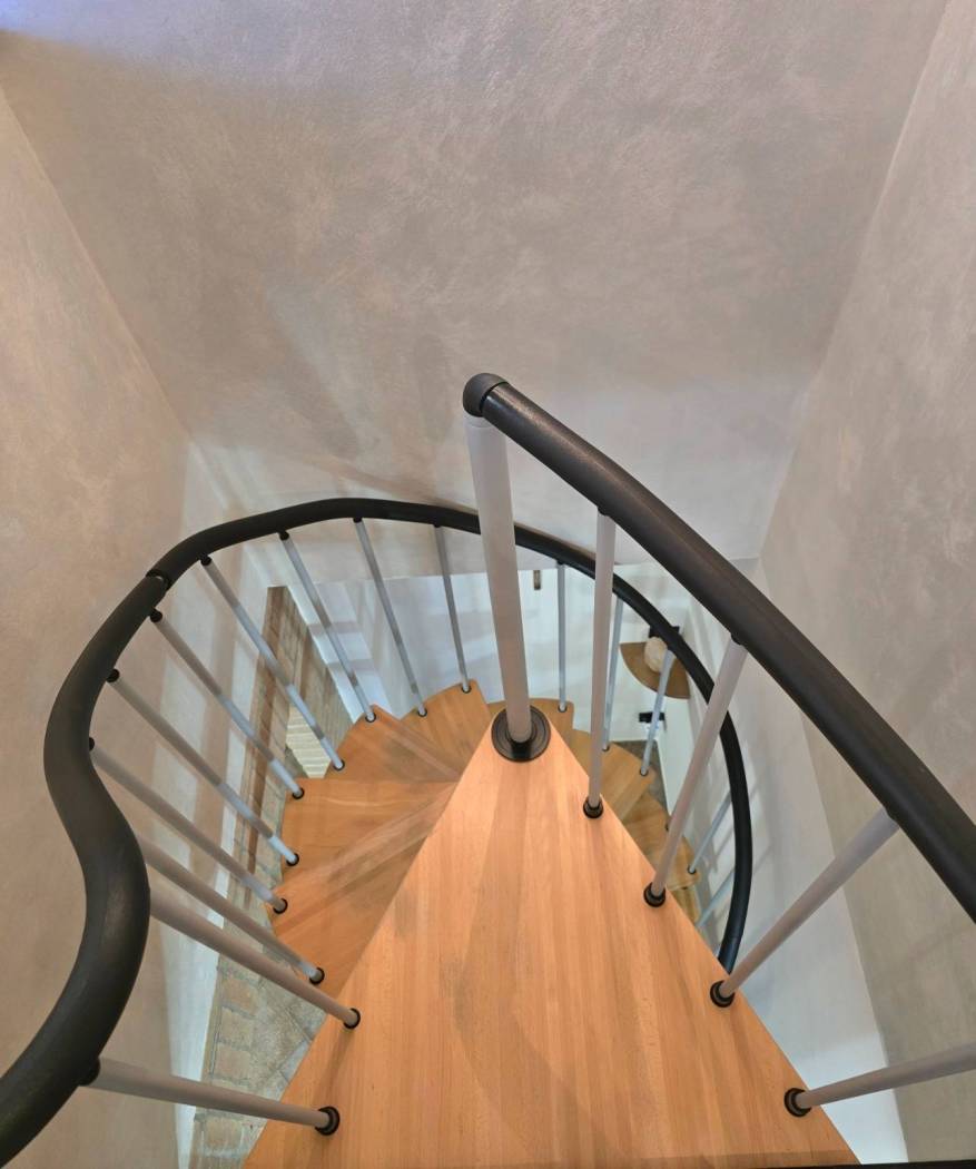 Il piano terra è altrettanto sorprendente, con un alloggio indipendente che include un salone, una camera da letto, una cabina armadi e un bagno. Il porticato verandato, con grandi finestre, permette di godere della luce naturale tutto il giorno. La scala a chiocciola conduce alla zona cucina living, ideale per momenti conviviali in famiglia.